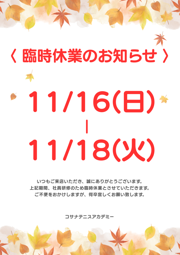 下記期間で臨時休業日を設けさせて頂きます。全館休業となりますので