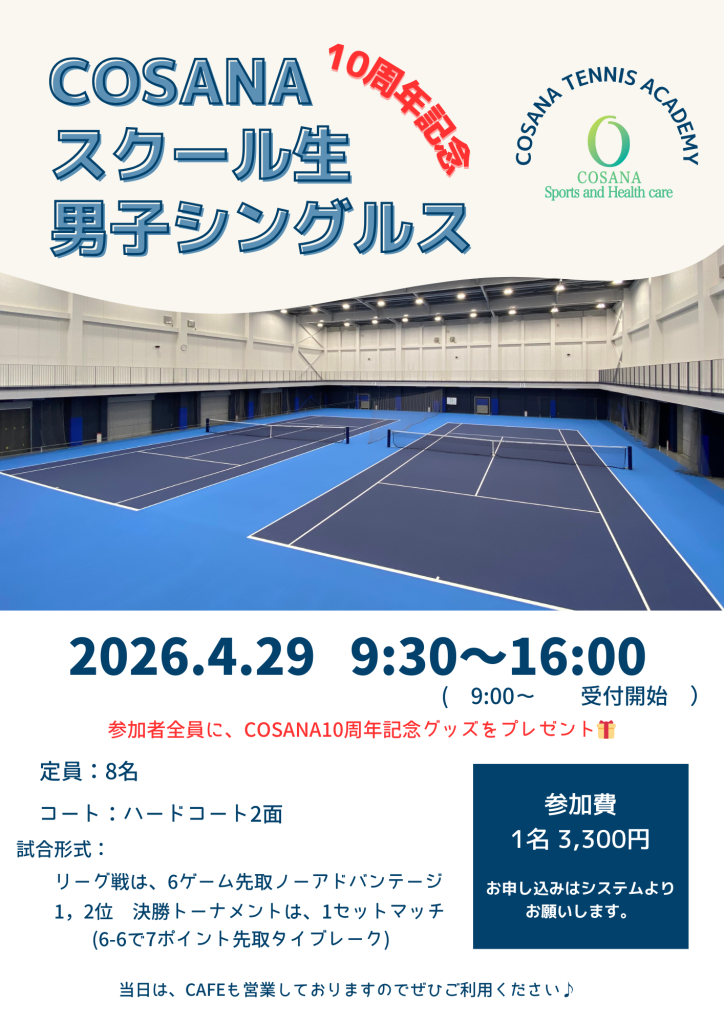 コサナテニスアカデミーは、2026年4月で10周年を迎えます!㊗️